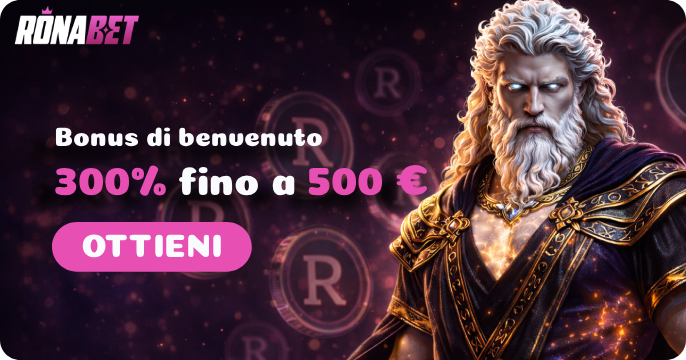 Su Ronabet Casino accogliamo i nuovi giocatori con un potente welcome bonus del 300% fino a 500 €, ideale per iniziare con un bankroll più ampio. Su Ronabet troverai oltre 20.000 giochi, più di 100 provider internazionali, slot con RTP fino al 98%, Live Casino in HD e scommesse sportive. Il bonus è accompagnato da cashback regolari, promozioni settimanali e un programma VIP a 9 livelli. Registrati ora su casino, richiedi il bonus di benvenuto e inizia subito a giocare su Ronabet.